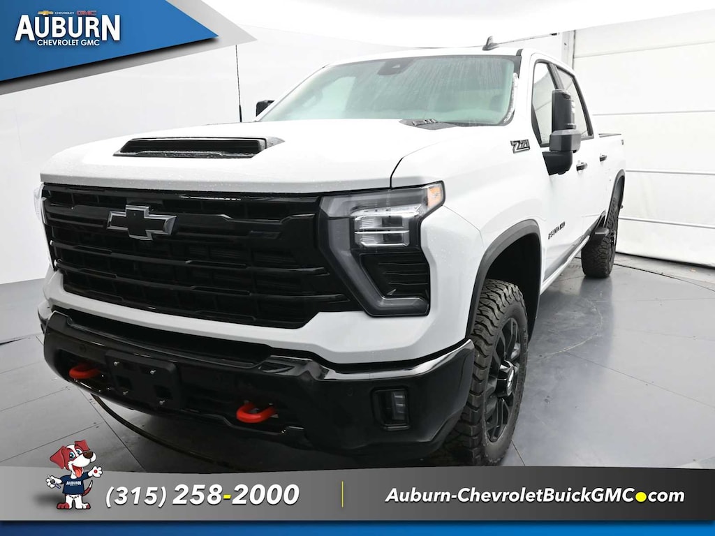 TRAIL BOSS PACKAGE Includes black grille bar with "Chevy Black Bow Tie", Black grille inserts, (SRI) 20" High gloss Black painted wheels, (VB5) High Gloss Black painted front bumper, (VT5) High Gloss Black painted rear bumper, (UGA) Red Tow Hooks, (QFG) LT275/65R20 BF Goodrich off-road tires, Black skid plate, Black badging, Black bowtie on horn pad, (DP6) High Gloss Black mirror caps, Black hood vent surround, High Gloss Black door handles and (CGN) Chevytec spray-on bedliner. Includes high-intensity LED headlamps and (DWI) trailer mirrors. SAFETY PACKAGE includes (UD5) Front and Rear Park Assist, (UKV) Trailer Side Blind Zone Alert, (UFG) Rear Cross Traffic Alert, (UV2) HD Surround Vision, (UVN) Bed View Camera and (TRG) Trailer Camera Provisions (Includes (UET) Trailering App. CONVENIENCE PACKAGE includes (UF2) Cargo bed LED lighting, (CJ2) dual-zone automatic climate control, (A2X) 10-way power driver seat including power lumbar, (N37) manual tilt/telescoping steering column, (T3U) LED fog lamps, REMOTE START PACKAGE includes (BTV) Remote Start, (UTJ) Theft Deterrent System and (C49) rear-window defogger, Z71 OFF-ROAD PACKAGE includes (Z71) Off-Road suspension with off-road tuned twin tube Rancho shocks, (JHD) Hill Descent Control and (NZZ) skid plates (transfer case and oil pan) (Includes (QXT) LT265/70R17 all-terrain, blackwall tires and molded in color Black grille. MIRRORS, OUTSIDE POWER-ADJUSTABLE VERTICAL TRAILERING WITH HEATED AND AUTO-DIMMING UPPER GLASS lower convex mirrors, turn signal indicators, puddle lamps, (U12) perimeter lighting, auxiliary lighting, power folding/manual extending (extends 3.31" [84.25mm]) Includes (DD8) auto-dimming rearview mirror which can be upgraded to (DRZ) Rear Camera Mirror.), HEAT PACKAGE includes (KA1) Heated driver and passenger seats and (KI3) Heated steering wheel, AUDIO SYSTEM, CHEVROLET INFOTAINMENT 3 PREMIUM SYSTEM with Google built-in compatibility (select service plan required, terms and limitations apply) including navigation capability, 13.4" diagonal HD color touchscreen, includes multi-touch display, AM/FM stereo, Bluetooth® streaming audio for music and most phones; featuring Wireless Apple CarPlay® and Wireless Android Auto® capability for compatible phones, advanced voice recognition, in-vehicle apps, personalized profiles for infotainment and vehicle settings (STD), ENGINE, 6.6L V8 with Direct Injection and Variable Valve Timing, gasoline, (401 hp [299 kW] @ 5200 rpm, 464 lb-ft of torque [629 N-m] @ 4000 rpm) (STD), TRANSMISSION, 10-SPEED AUTOMATIC (STD).